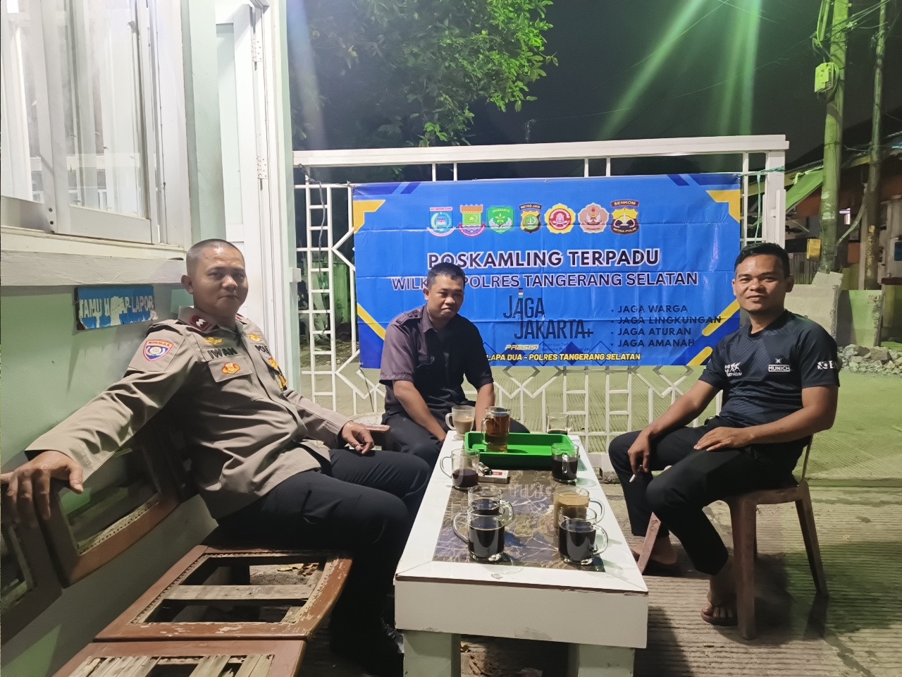 Pada kegiatan tersebut, AIPDA Iwan menyambangi Poskamling RW 006 dan bertemu dengan salah satu warga, Sdr. Didi, serta masyarakat yang sedang melaksanakan ronda malam.