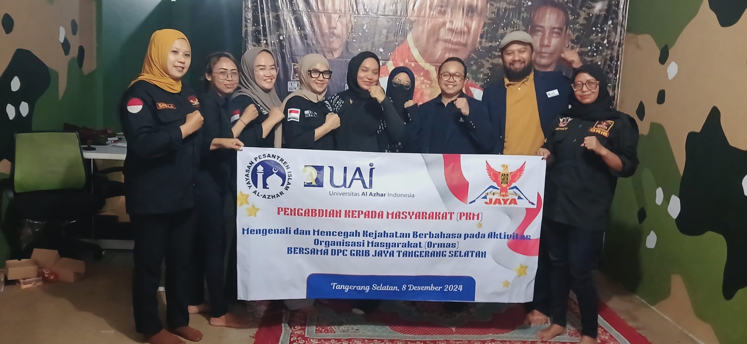 Kerja sama yang dikemas dalam bentuk Pengabdian Kepada Masyarakat (PKM) terselenggara atas kejasama DPC GRIB Jaya Kota Tangerang Selatan dengan Program Sudi Linguistik Terapan Fakultas Ilmu Pengetahuan Budaya Universitas Al-Azhar Indonesia. Kegiatan PKM yang dilaksanakan mengusung tema menarik yaitu “Mengenali dan Mencegah Kejahatan Berbahasa pada Aktivitas Organisasi Masyarakat (Ormas) Bersama DPC GRIB Jaya Kota Tangerang Selatan”.