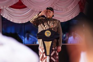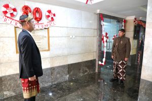 Menteri Nusron tampak mengenakan pakaian adat Abdi Dalem Yogyakarta, sementara Wamen Ossy mengenakan pakaian adat Bali.