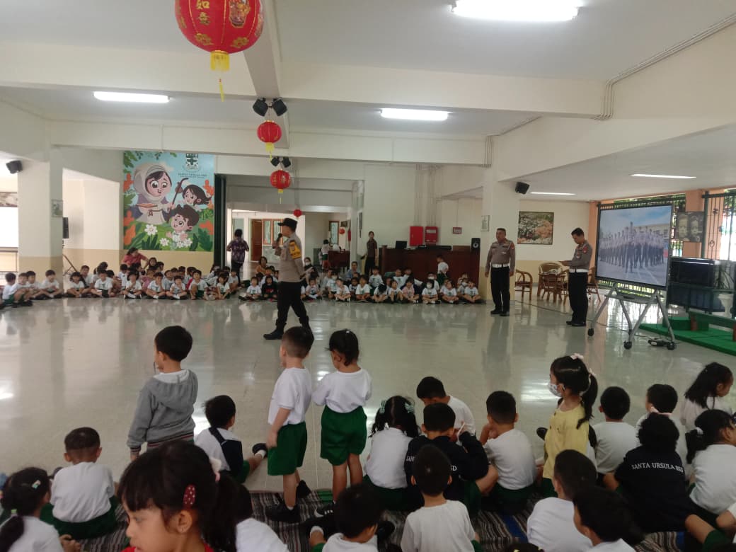 Polsek Serpong Tanamkan Cinta Profesi Polisi dan Tertib Lalu Lintas Sejak Dini di KB-TK Santa Ursula BSD